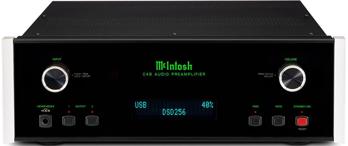 The C49 comes complete with classic McIntosh design staples such as a black glass front panel, knobs, an illuminated logo and aluminum end caps. Pair it with a variety of amplifiers, turntables, CD players, tuners, speakers, power controllers and room correction devices to make a complete home audio system. Contact your local dealer to learn more.
