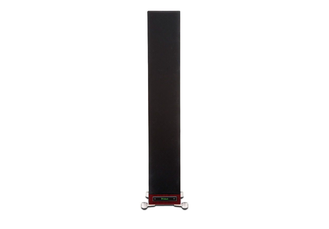 XR100 floor standing loudspeaker is sleek and contemporary in appearance while producing full range audio reproduction typical of much larger cabinet designs. Fine gloss wood finishes are offered in Black, Pear Maple, and Red Walnut. The magnetically attached grill is acoustically transparent and covered with neutral black cloth. Unique front panel McIntosh logo may be illuminated when configured with a McIntosh system. Spikes and furniture glide feet are included.