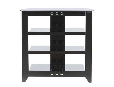 The SANUS Natural Series NFAV230 is a 30-inch tall four-shelf audio stand with a contemporary design that blends perfectly into any home dcor. Its hardwood and graphite-finished steel construction offers a superior combination of stability and elegance. Extra-thick tempered-glass top shelf supports up to 110 lbs and the middle shelves support to 50 lbs each; black and mocha-finished models feature smoked glass. Top shelf rear corners are angled for positioning in corners. Features include non-slip protector pads to isolate shelves from frame, open architecture for unrestricted airflow and a concealed rear cable management channel.
