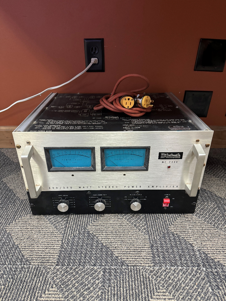 The MC2300 was a classic solid state amplifier from 1971-1980. It is 300Wx2 or 600Wx1 and includes autoformers. It is the amplifier that powered the Grateful Dead "Wall of Sound". The customer took very good care of it for over 40 years, as they used to work for a McIntosh dealer like us, and dearly loved the brand and the product. Here's a chance to get a good piece of history in a fantastic McIntosh product.